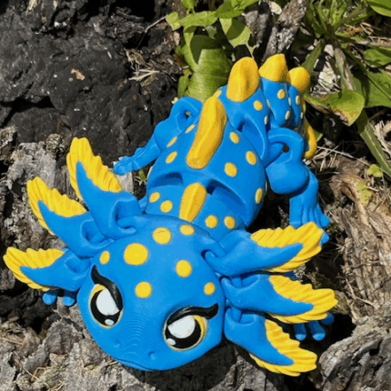 The axolotl is a very popular pet, and this 3D-printed model captures this salamander’s unique look and cuteness perfectly. His body, legs, and the “fins” on his head are all jointed, allowing them to move independently. (The fins are actually external gills.) This charming fellow measures 9″ from the tip of his nose to the tip of his tail. This pink version is sure to capture the imagination of fans of this unusual pet. My 3D-printed animals are all individually printed, with no mass production. No two prints are alike, and each will have minor variations – a truly unique gift or keepsake.