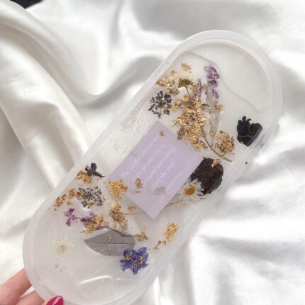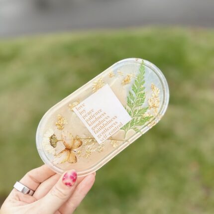 Each tray is a handcrafted treasure, featuring real pressed flowers and some have the addition of realistic butterflies sealed in glossy resin. No two are ever the same—every piece is uniquely designed with love and intention, showcasing an inspirational Bible verse at its heart. These trays are perfect as thoughtful gifts, decor for your sacred space, or daily reminders of faith and beauty.