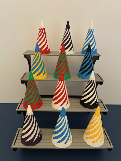 Enjoy some fun with these mesmerizing 3D-printed fidget toys. These medium-sized fidget toys consist of two parts, and as the two videos show, they fit into each other in two different ways. Individually printed, each is unique and they may have slight variations. These fidget toys make great gifts for young, busy hands and also make the perfect addition to gift bags for parties and school events. 3 inches tall. Colors vary.