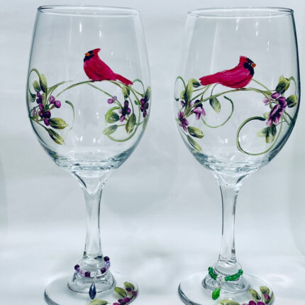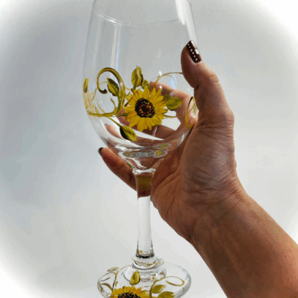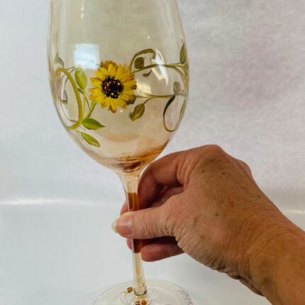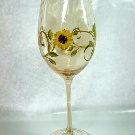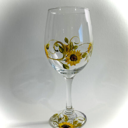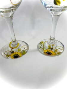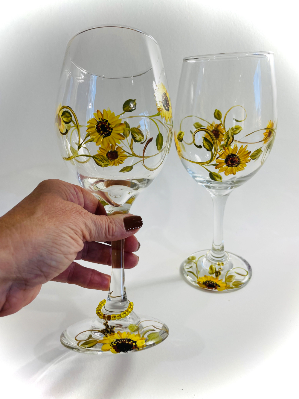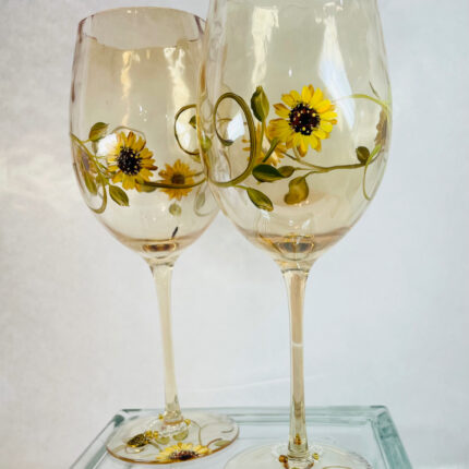 These pair of wineglasses feature beautiful hand painted sunflowers with vines and