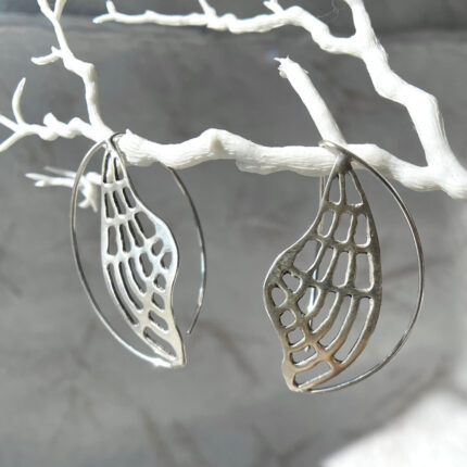 Wearable art in an beautiful, leaf-like design! Handcrafted, hand-cut in sterling silver, these nature-inspired earrings with a square connection.