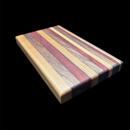 Add a touch of craftsmanship and functionality to your kitchen with our Woven Wooden Cutting Board. This 13.5” x 7.5” x 1.25” board is meticulously handcrafted from a harmonious blend of premium hardwoods, including Maple, Cherry and Canary Wood